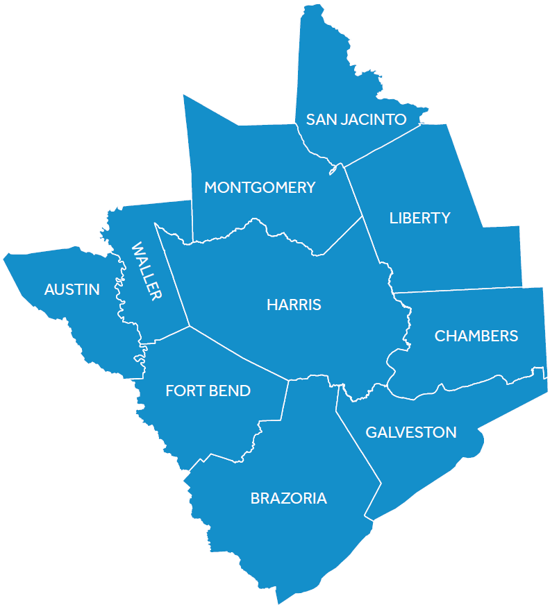 Note: The geographic area referred to in this publication as “Houston,” "Houston Area” and “Metro Houston” is the ten-county Census designated metropolitan statistical area of Houston-Pasadena-The Woodlands-Sugar Land, TX. The ten counties are: Austin, Brazoria, Chambers, Fort Bend, Galveston, Harris, Liberty, Montgomery, San Jacinto, and Waller.
