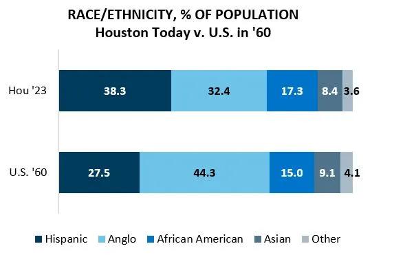 The demographic shifts that began in Houston 30 years ago are filtering through the rest of the nation. Houston’s racial/ethnic composition today reflects the direction in which the U.S. is headed.