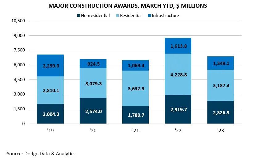 Construction awards for July year-to-date came in at $25.4 billion, up marginally from last year’s $25.3 billion. Growth was led by non-building projects (i.e. roads and other infrastructure) and manufacturing facilities, which saw their respective award values increase by $1.6 billion and $924.5 million compared to last year. Contract awards for multi-family housing and commercial facilities also grew by $448.0 million and $195.7 million, respectively. Growth in the areas above offset losses in single-family housing (down $1.3 billion) and miscellaneous non-residential buildings (down $1.8 billion).