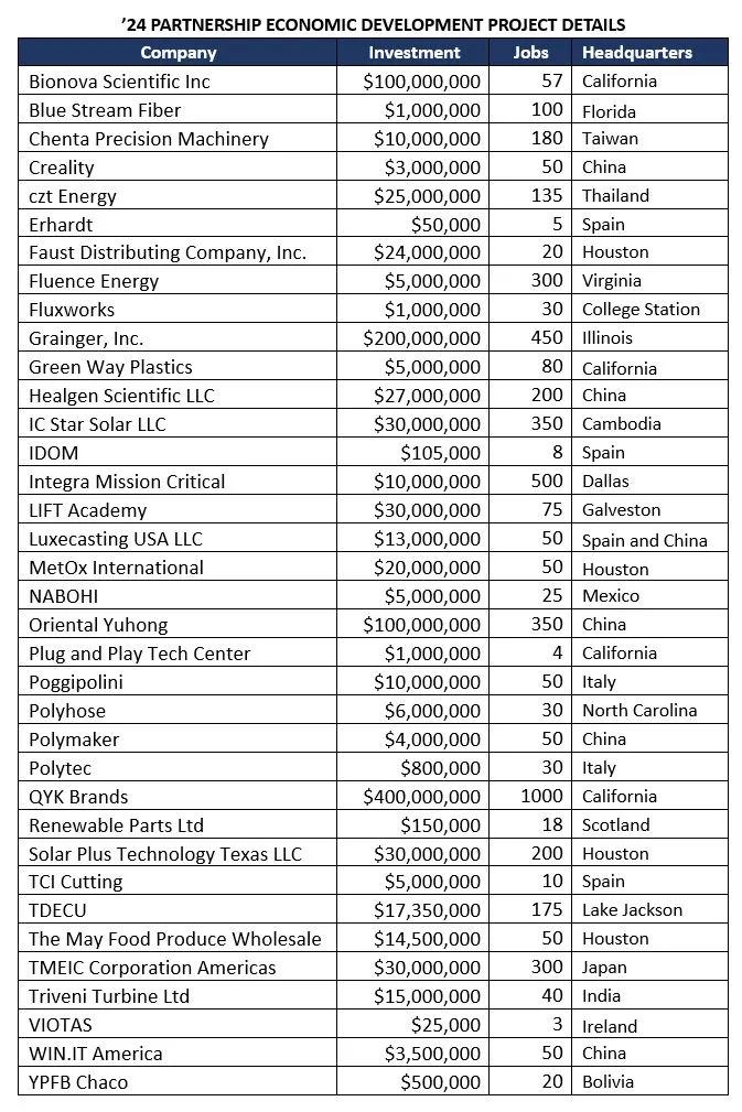 A total of 158 businesses established new facilities in the Houston area in ’24, a 2 percent drop from 161 in ’23.