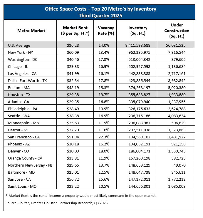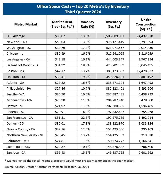 In Q3/24, Houston had over 359.8 million sq. ft. of existing inventory