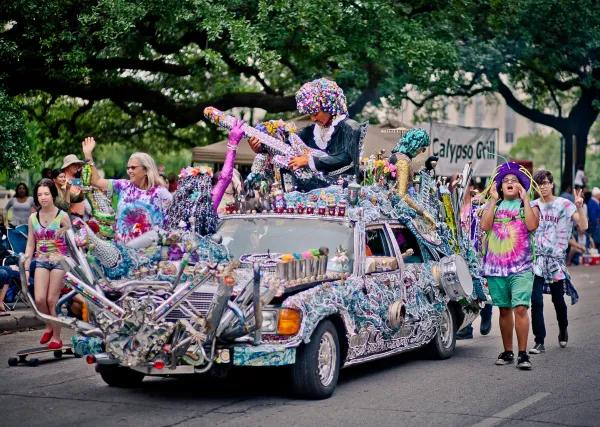 Roll around on April 15 for the Houston Art Car Parade, which attracts over 250 cars and an audience of 300,000 spectators eager to see the weird and wild roadway creations.